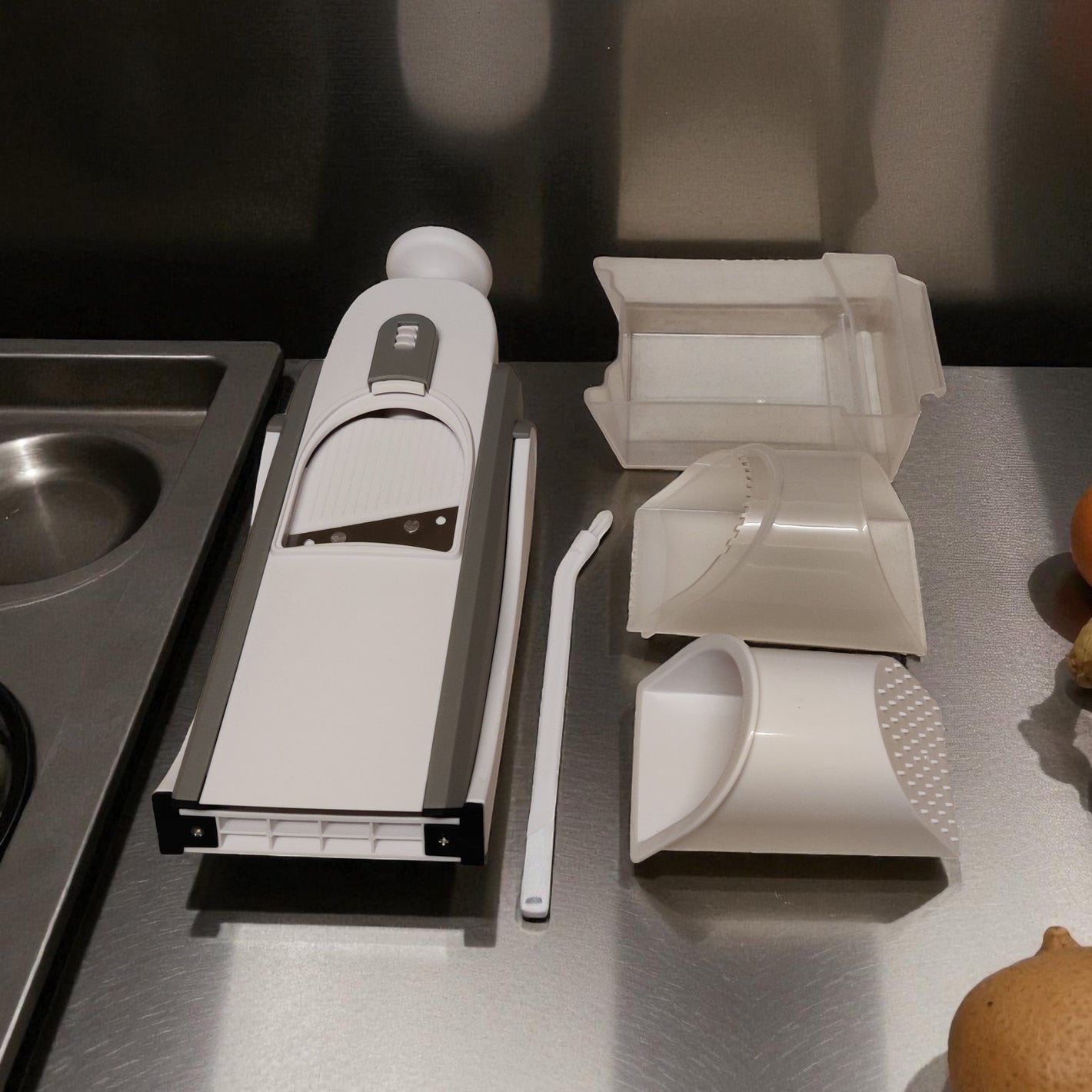 Esta mandolina es perfecta para frutas y verduras como pepinos, zanahorias y calabacines. Con sus múltiples configuraciones de grosor ajustables, puedes crear rebanadas delgadas, medianas y gruesas, ideales para ensaladas, guarniciones o cualquier plato que desees preparar.