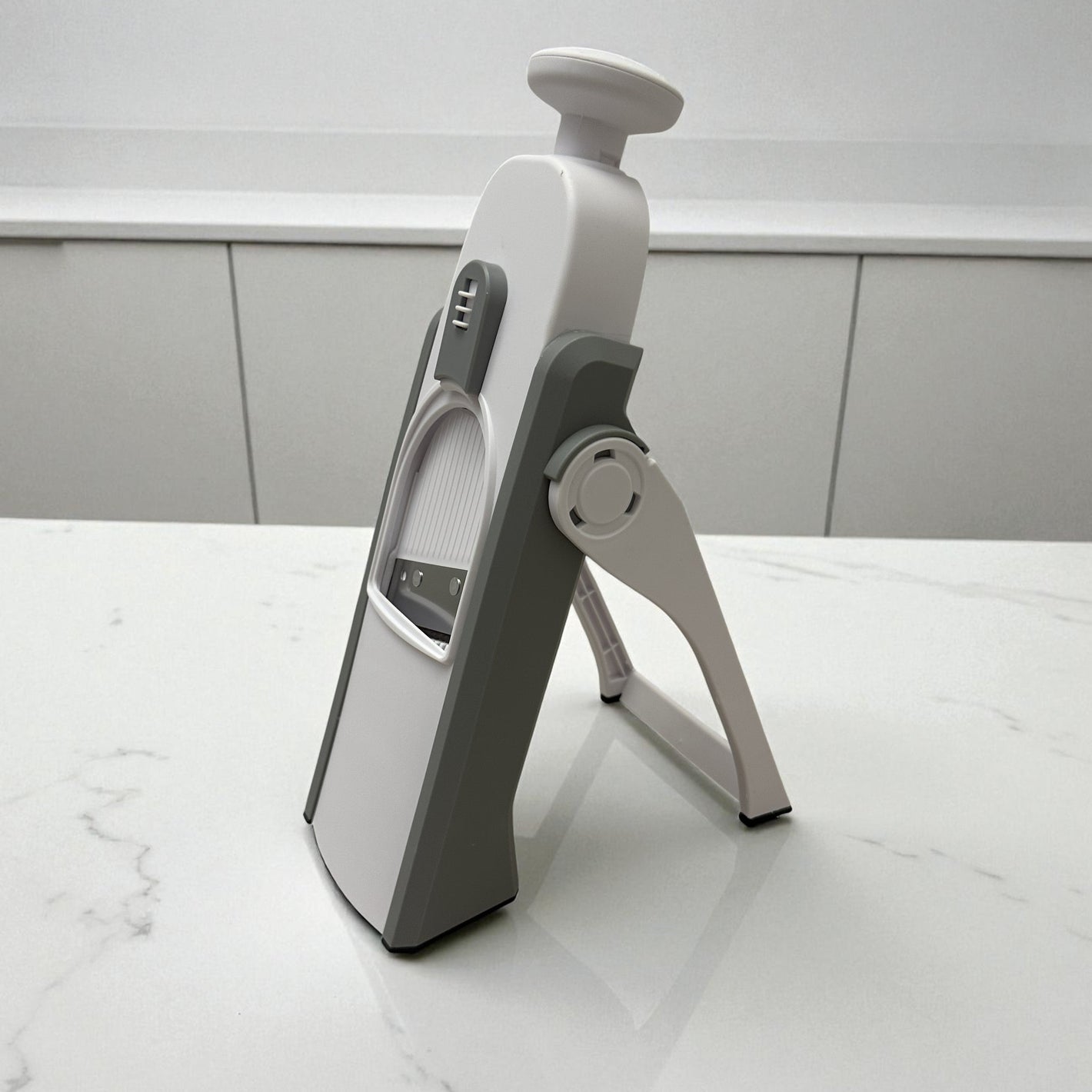 Esta mandolina vertical ofrece precisión y uniformidad en todas tus rebanadas, eliminando la frustración de cortes desiguales. Además, su diseño ergonómico y compacto asegura facilidad y seguridad, facilitando una experiencia de cocina más rápida y eficiente, sin el riesgo de accidentes que conlleva un cuchillo.