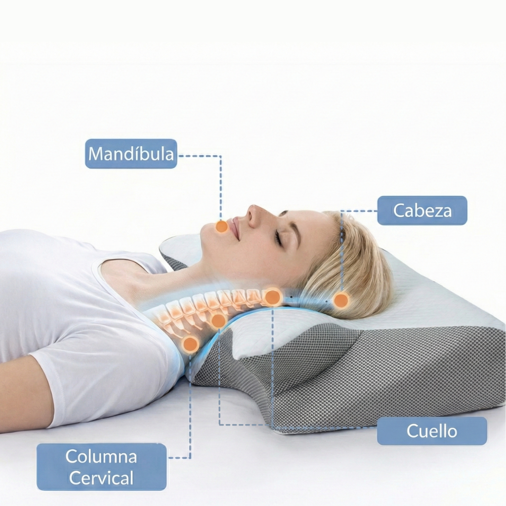 Almohada ergonómica con la forma perfecta para corregir la postura y aliviar dolores cervicales.