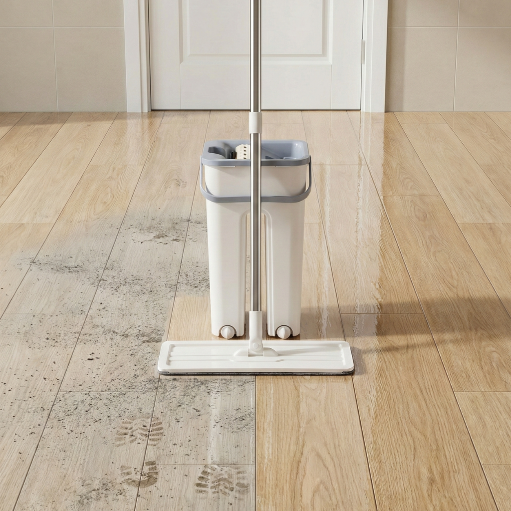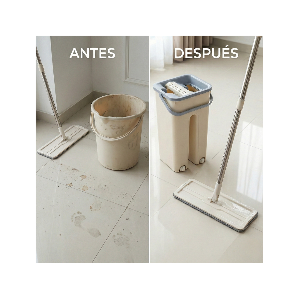 Gracias a su sistema de doble compartimento, el agua limpia y el agua sucia permanecen separadas en todo momento. La mopa se lava en una zona y se escurre en otra, evitando volver a ensuciar el suelo y garantizando un acabado mucho más higiénico, uniforme y brillante en cada pasada.