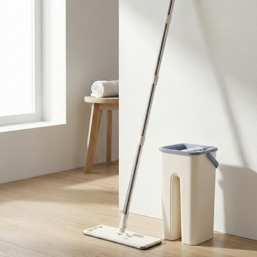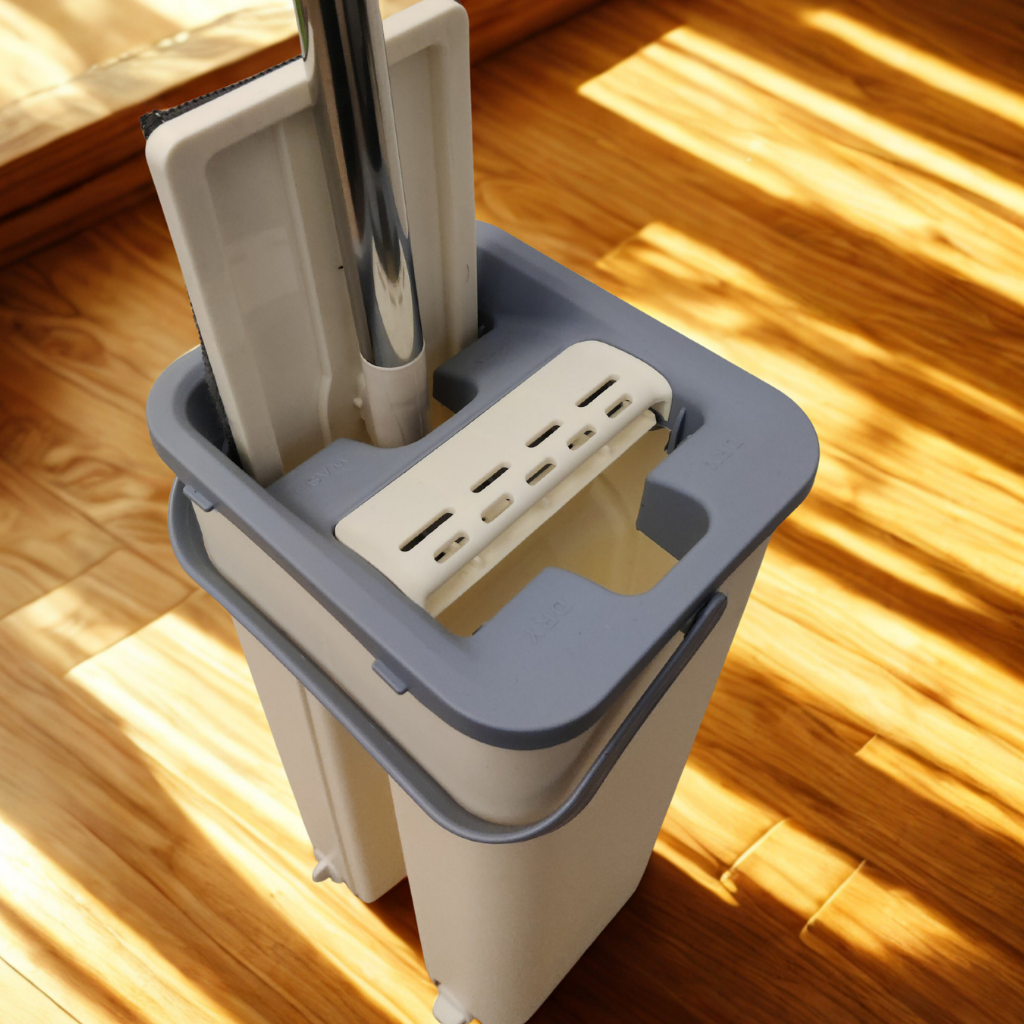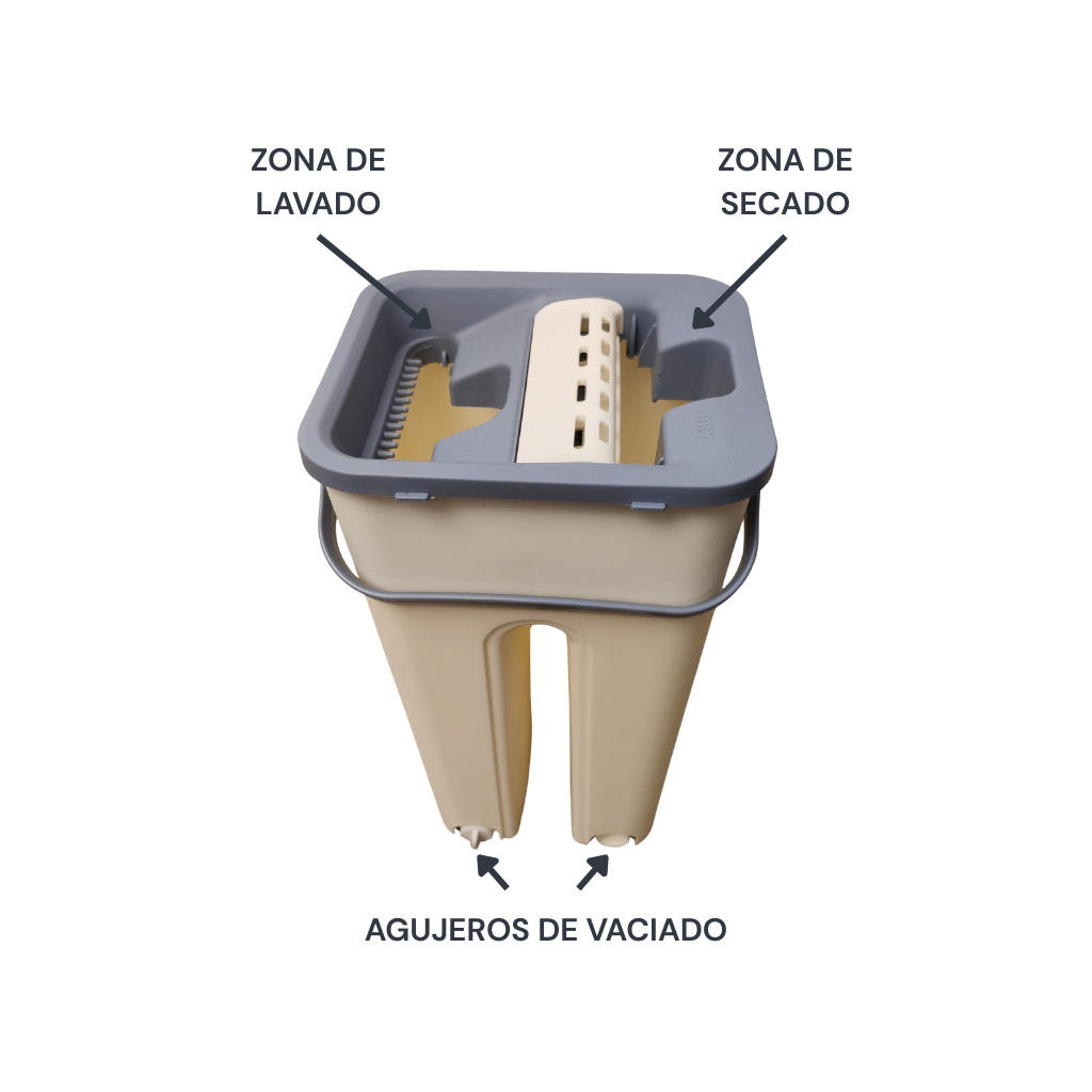 - Zona de secado: equipada con sistema de prensado que retira el exceso de agua, dejando la mopa con el nivel de humedad adecuado para limpiar sin encharcar.